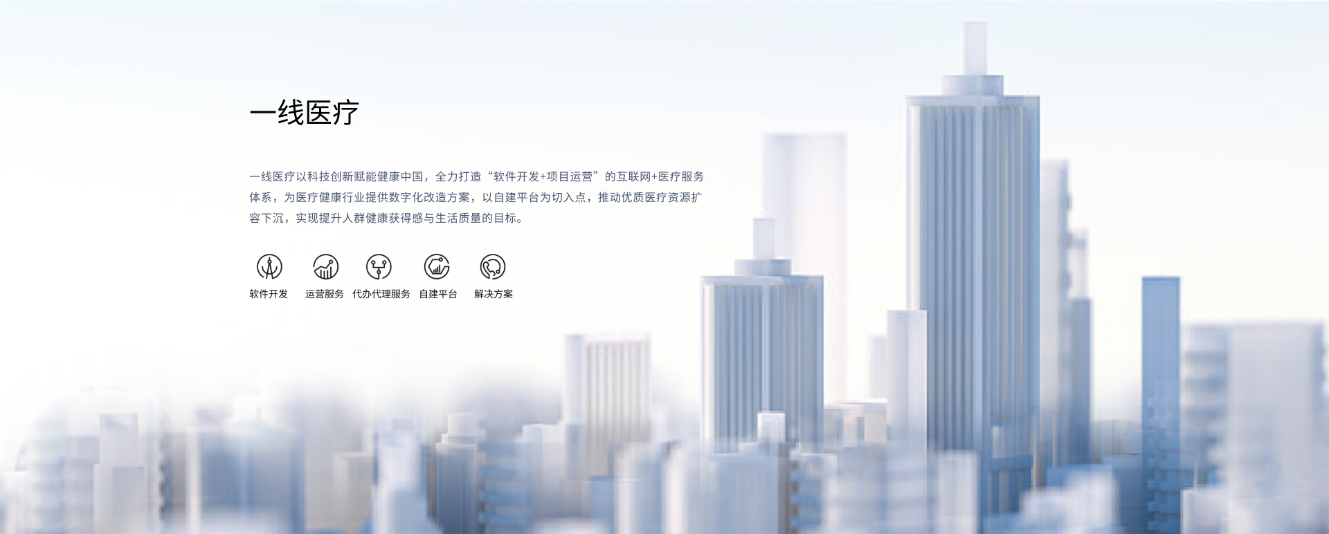 以“普及更廣泛、更便捷的醫療服務”為己任,聚焦數字醫療服務領域,致力于科技智慧創新醫療服務模式。全力打造“軟件開發+項目運營”的互聯網+醫療服務體系,為醫療健康行業提供數字化改造方案。以自建平臺為切入點,推動優質醫療資源擴容下沉,實現提升人群健康獲得感與生活質量的目標。